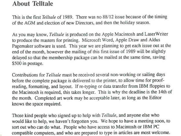 In 1989, we get a little peak into the details of it’s creation (image below). Today the Telltale is created by NSC volunteers and staff in a mailing distribution program called MailChimp.